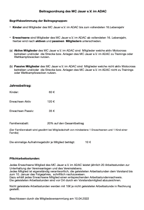 | Aufnahmeantrag | Satzung | Beitragsordnung |